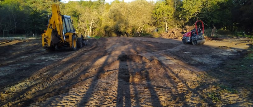 Nous avons réalisé une étude technique approfondie et fourni un suivi complet pour la construction d'une plateforme en gravier destinée à accueillir un hangar solaire de 800m2. Le terrain a été préalablement nivelé, puis un géotextile a été soigneusement posé avant d'être recouvert de gravier. Notre expertise technique et notre gestion de chantier ont permis de mener à bien ce projet, garantissant la solidité et la durabilité de la plateforme pour le hangar solaire. Nous avons veillé à ce que chaque étape de la construction soit réalisée avec précision, en accord avec les normes de qualité et de sécurité les plus strictes. Nous sommes fiers du travail accompli et du résultat final, offrant à nos clients une infrastructure fiable et performante pour leur installation solaire.